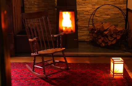 古民家に溶け込むようロビーにある囲炉裏。夕食後には、自在鉤とやかんが目を引く昔懐かしい雰囲気の囲炉裏へと移動して、パートナーと旅の思い出話をしながら、のんびりとしたひと時を過ごしましょう。